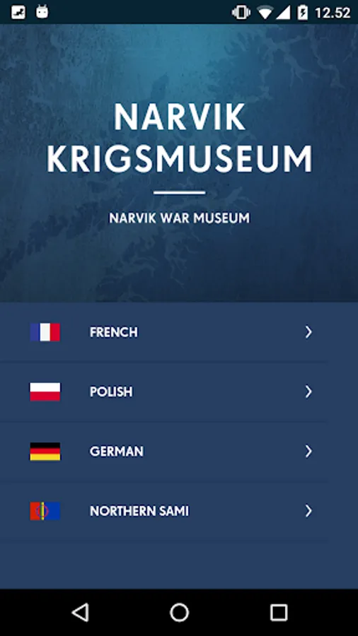 EurekApp is a tool developed to make the exhibition texts of the Narvik War Museum as accessible to our visitors as possible. The exhibition has printed text in English and Norwegian. For those of our guests that are unable to read either of those languages we have translated the texts to a number of languages and made them accessible in the easy-to-use app EurekApp. The texts in English and Norwegian are not provided in the app.