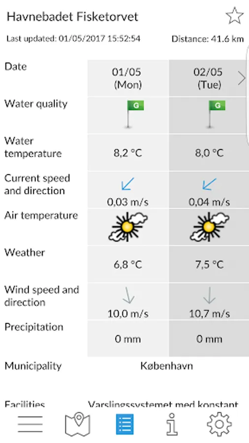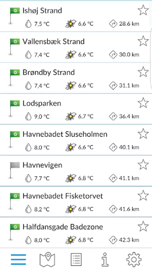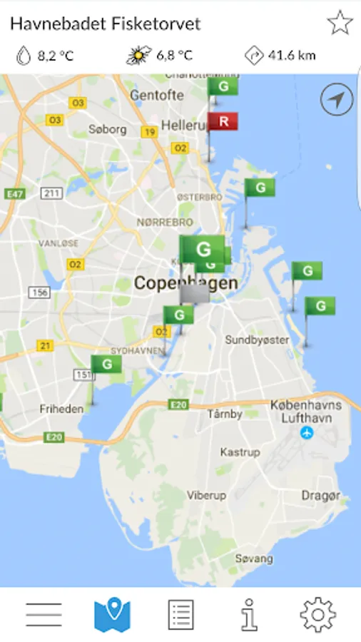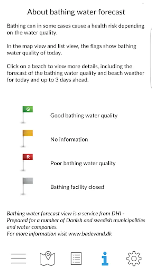This app shows the bathing water quality and weather at selected Danish beaches.