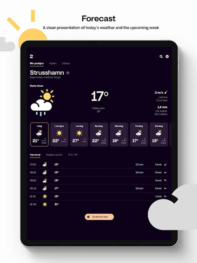 Say hello to TV 2 Været! We’ve updated our visual identity and changed the name from Storm to TV 2 Været. The weather forecast is still accurate and from Storm, and you can compare with Yr. For quick access, save your favorite locations and add the widget to your home screen.