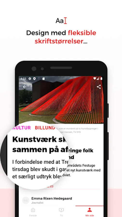 TV SYD is an app that you can adapt to your needs. Under 'My news' you can make your very own personal news list with the latest news from the municipality or sections and sections you are most interested in. You can also be quickly updated with notifications from TV SYD: Get breaking news directly on your phone , so you never miss important stories from our region.