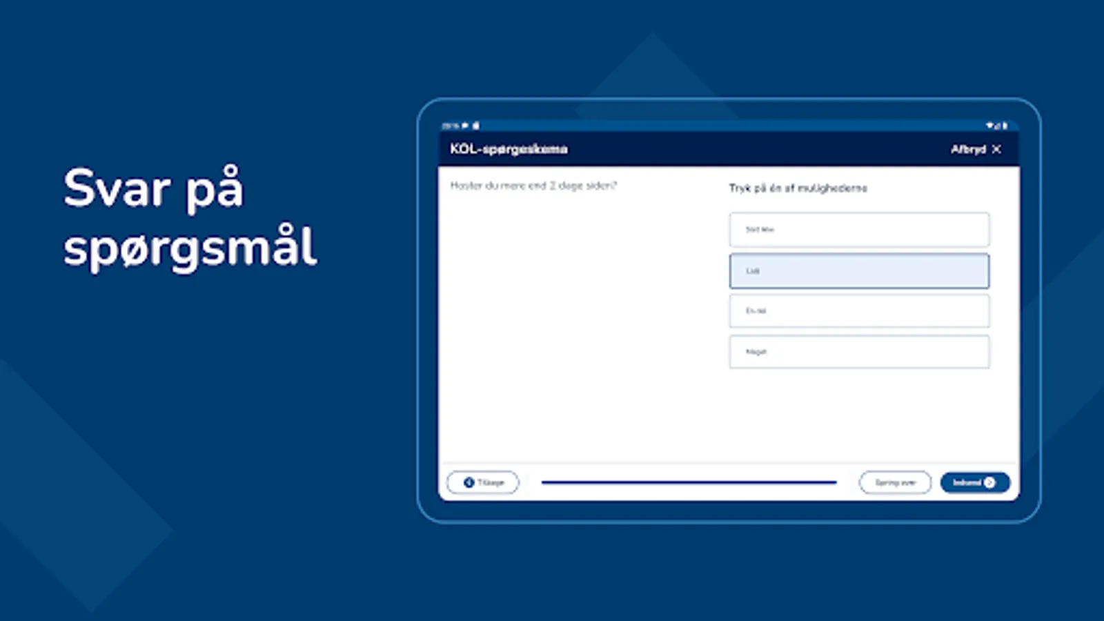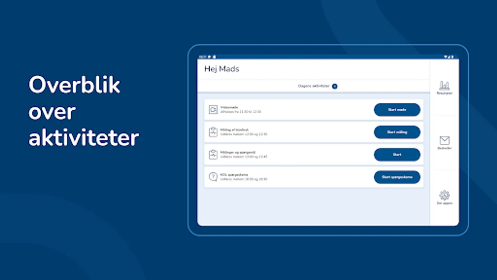 In the Telma app, citizens who are offered a telemedicine course at the health service can get an overview of which activities they have to carry out on a given day. If you have not been offered a course in Telma via your doctor, there is no content in the Telma app.