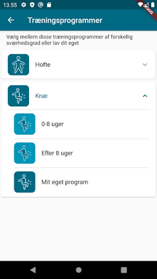 This app is targeted at patients in need of rehabilitation or training in relation to a course at one of the region's hospitals. The purpose is to present different exercises that can have a good effect in relation to training / rehabilitation. The data you register about yourself does not belong to the North Jutland Region. Data is stored only on your device.