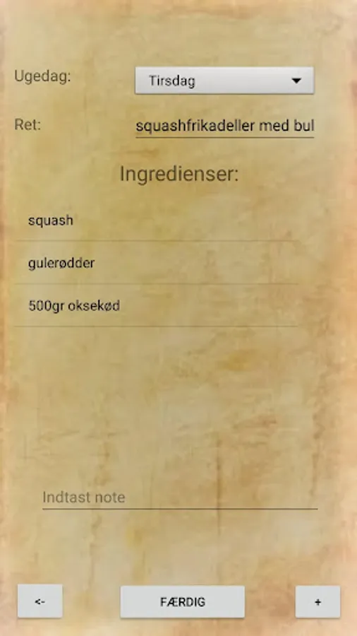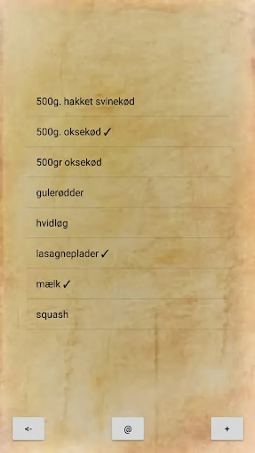 When you navigate to the shopping list to the ingredients from the weekdays automatically be transferred to the shopping list. When you are on the shopping list, it will be possible to add new items. Click to select the item found - click and hold to delete the item.