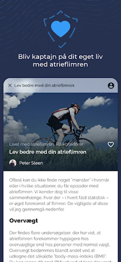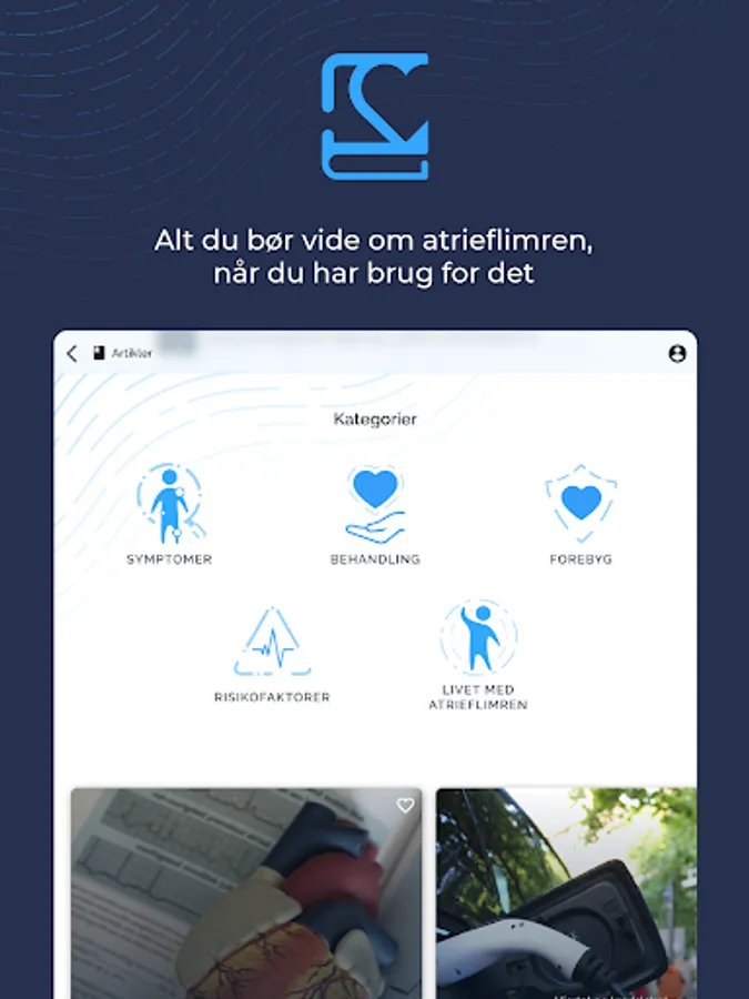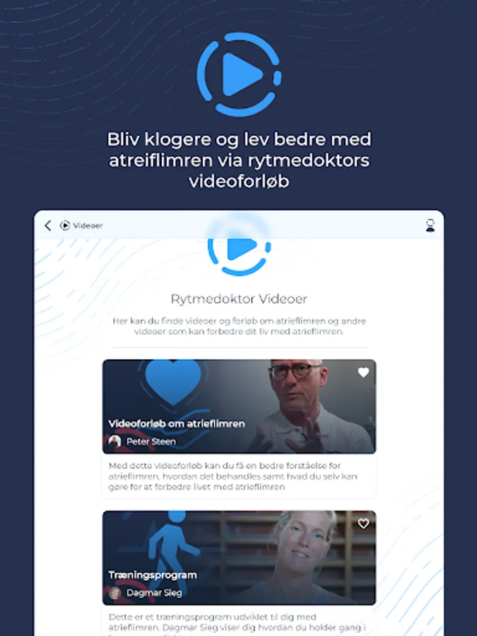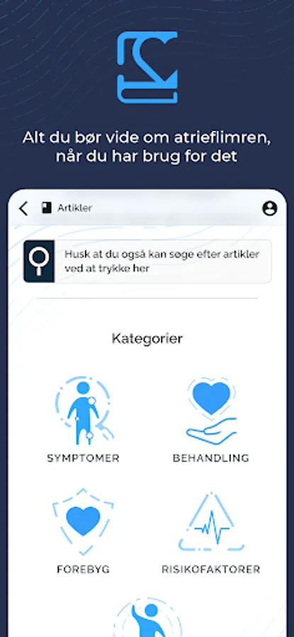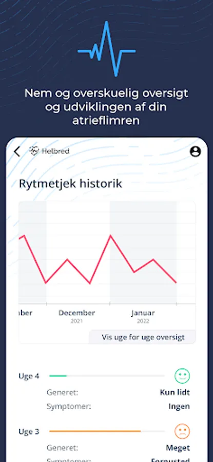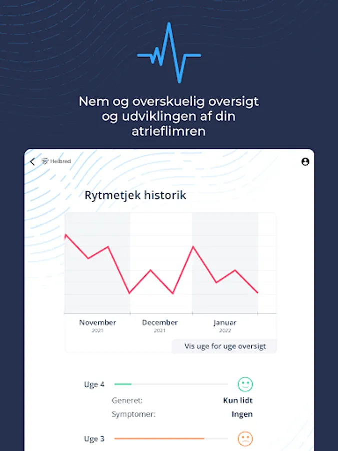 The Rhythm Doctor app helps you keep track of your heart, by forming an easy and clear overview of the development of your atrial fibrillation. Through Rytmedoktor's knowledge library, you will find everything about atrial fibrillation, and thus everything you need to know to become the captain of your own life.