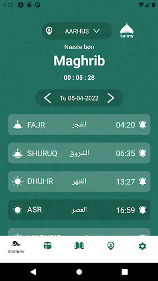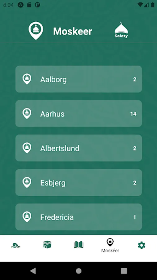Salaty is an app that has several purposes, including sending reminders when there is time for prayer, showing prayer direction, overview of mosques, Dua, Azkar and the opportunity to donate money to charity.