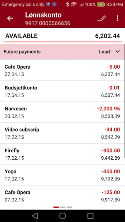 * Check transactions and future payments