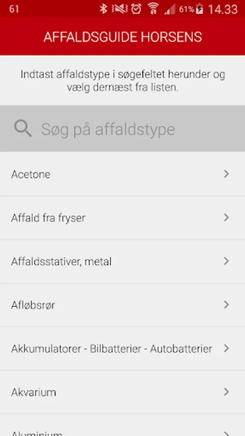 Waste Guide Horsens is an App that describes how people should handle their waste, according to Horsens Municipality sorting instructions.