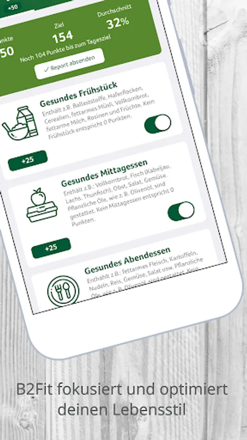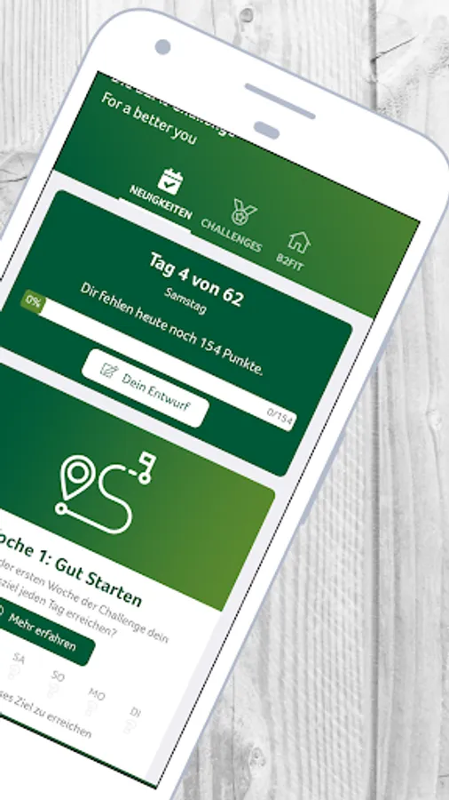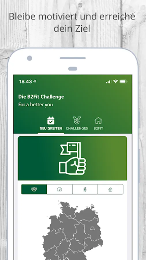 Use the app to take part in the 6-week B2Fit Challenge, collect healthy points every day and thus sustainably improve your lifestyle. You must have registered in advance on our website www.b2fit.de. With the app you always have an overview of your behavior, your personal progress, the status of your team and the development of other participants and teams.