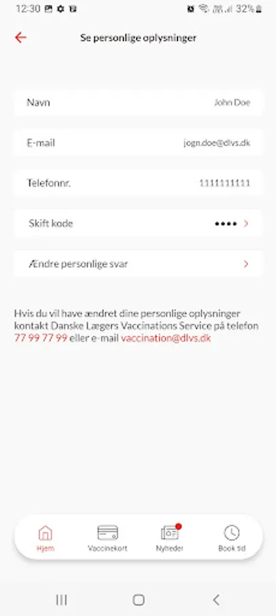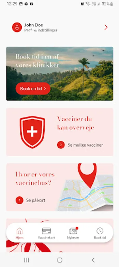 Here you will find information about possible vaccines, links to booking vaccinations and can see where the mobile vaccination clinic is located during a given period. The mobile vaccination clinic is, for example, out to selected events or in selected areas where you can be vaccinated without prior booking. You can also access profile & settings directly from this page. Here you can change personal information, change your code and set your notifications.