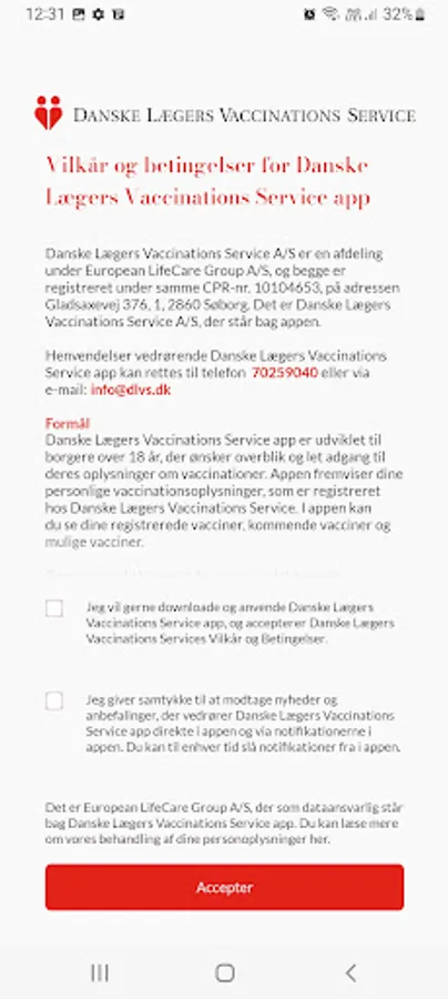 Danske Lægers Vaccinations Service is Denmark's largest independent provider of vaccinations, and has more than 40 specialized vaccination clinics across the country. Easily find a clinic near you and book an appointment directly in the app. Get an automatic reminder of upcoming appointments and see which vaccines you have received from DLVS.