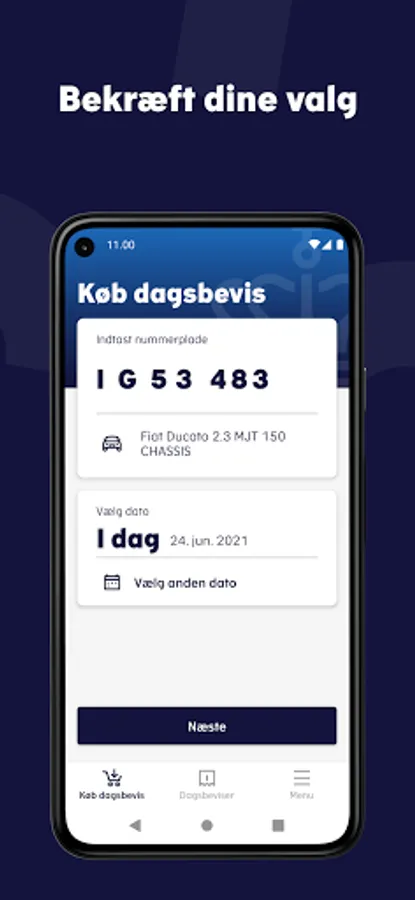 • Du skal købe dagsbeviset mindst 5 minutter før, du bruger bilen til privat kørsel, og du kan købe det op til 45 dage før.