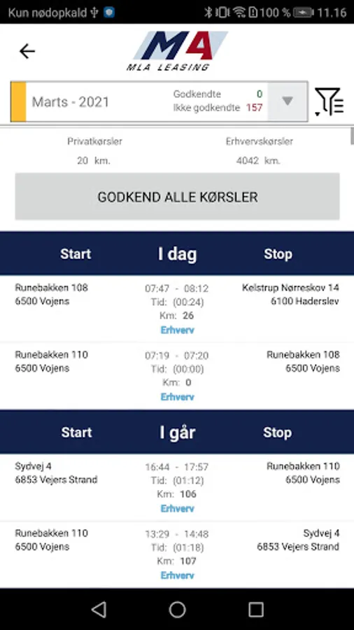 See all your GPS tracker devices on Android when you're on the road instead of the normal tracking website. Here you get an overview of vehicle positions here and now.