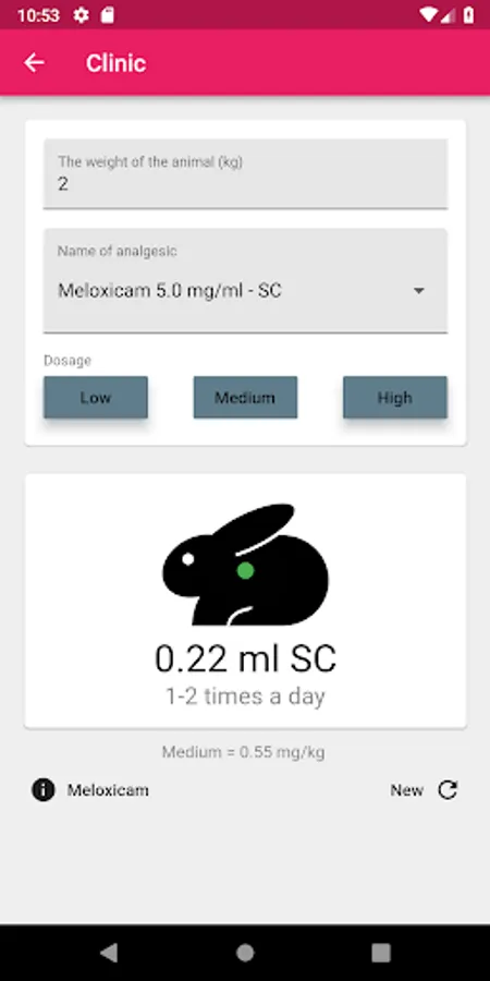 Includes: Pain-management of rabbits based on body weight, level of pain, type of medication and route of administration.