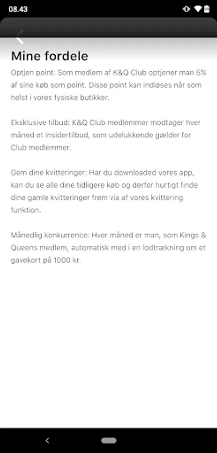 This app allows you to collect points every time you shop at most Kings & Queens stores in Scandinavia. You also always have the opportunity to see how many points you have collected and when you can use them. The app also includes the ability to enter contests, receive offers, and an easy "store locator" so you can quickly find your nearest Kings & Queens store. As a member of the customer club, you will automatically receive sales and marketing related material from Kings & Queens via SMS or email.