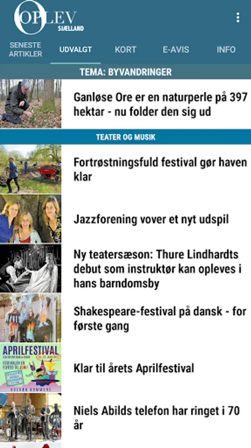 Around the clock, new articles from all over Zealand appear on the app. You can also choose to read selected articles under the theme that interests you most: Theater and music, Nature and fresh air, Food and market, Sports and well-being or Art and exhibitions.