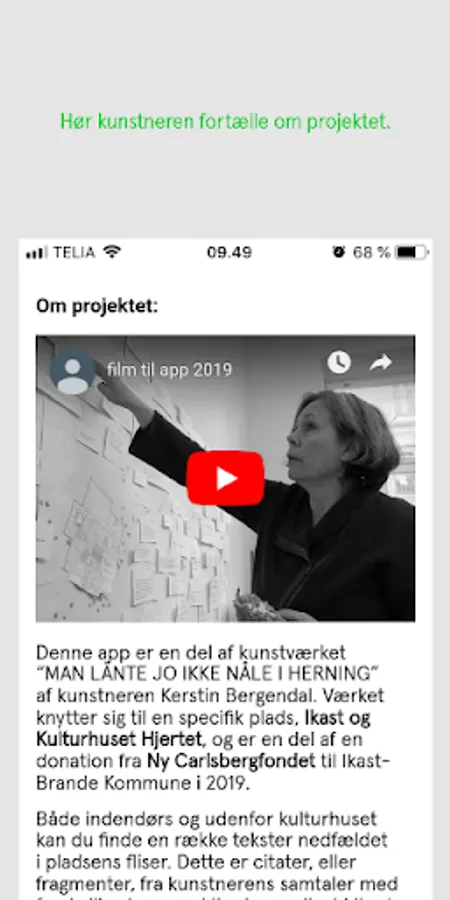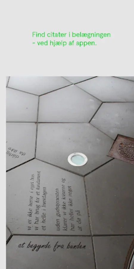 Inside and outside the Culture House, you can find a number of texts embedded in the tiles of the square. These are quotes, or fragments, from the artist's conversations with various citizens in Ikast - about life in Ikast. In the surface of the square, the many different voices gather for a different picture of the city today. To find the quotes you must explore. You can do this both in the square and in the app. But in the app there is more to download: Click on a quote - and see what comes out!