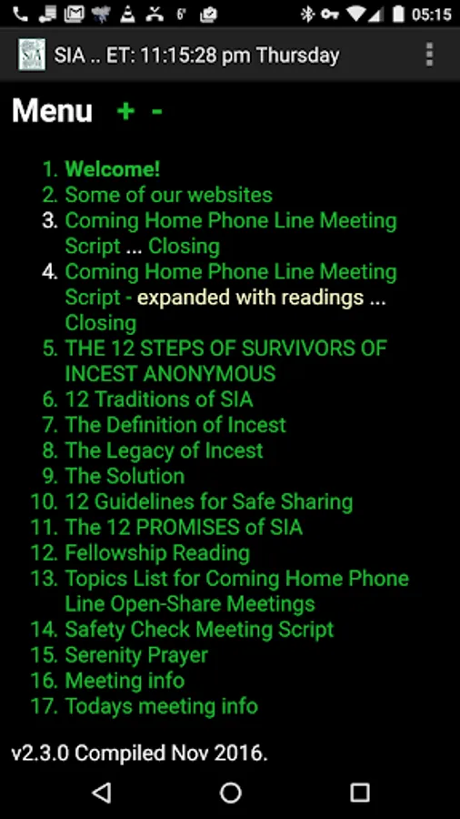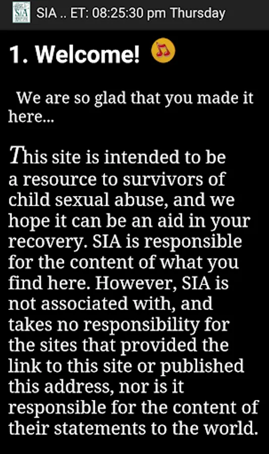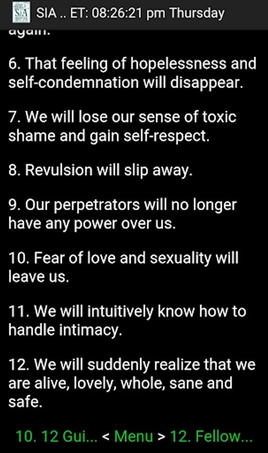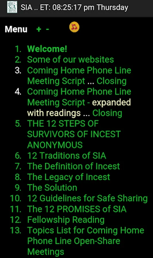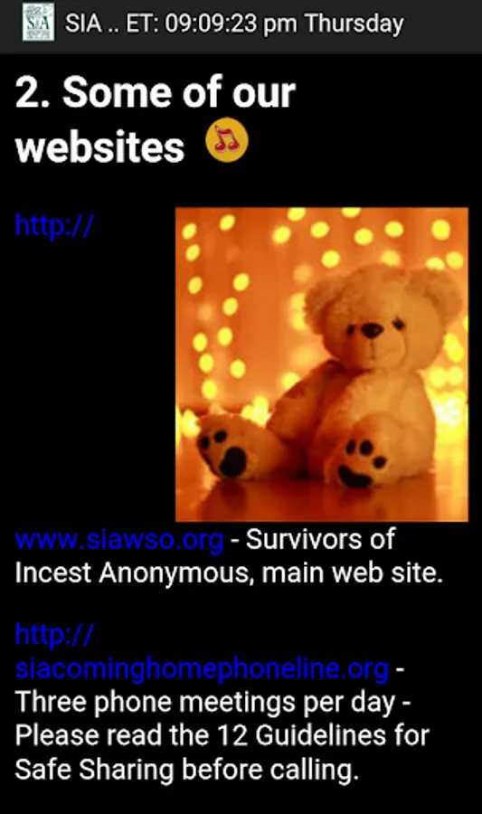 meetings and workshops for survivors of incest and childhood sexual abuse.