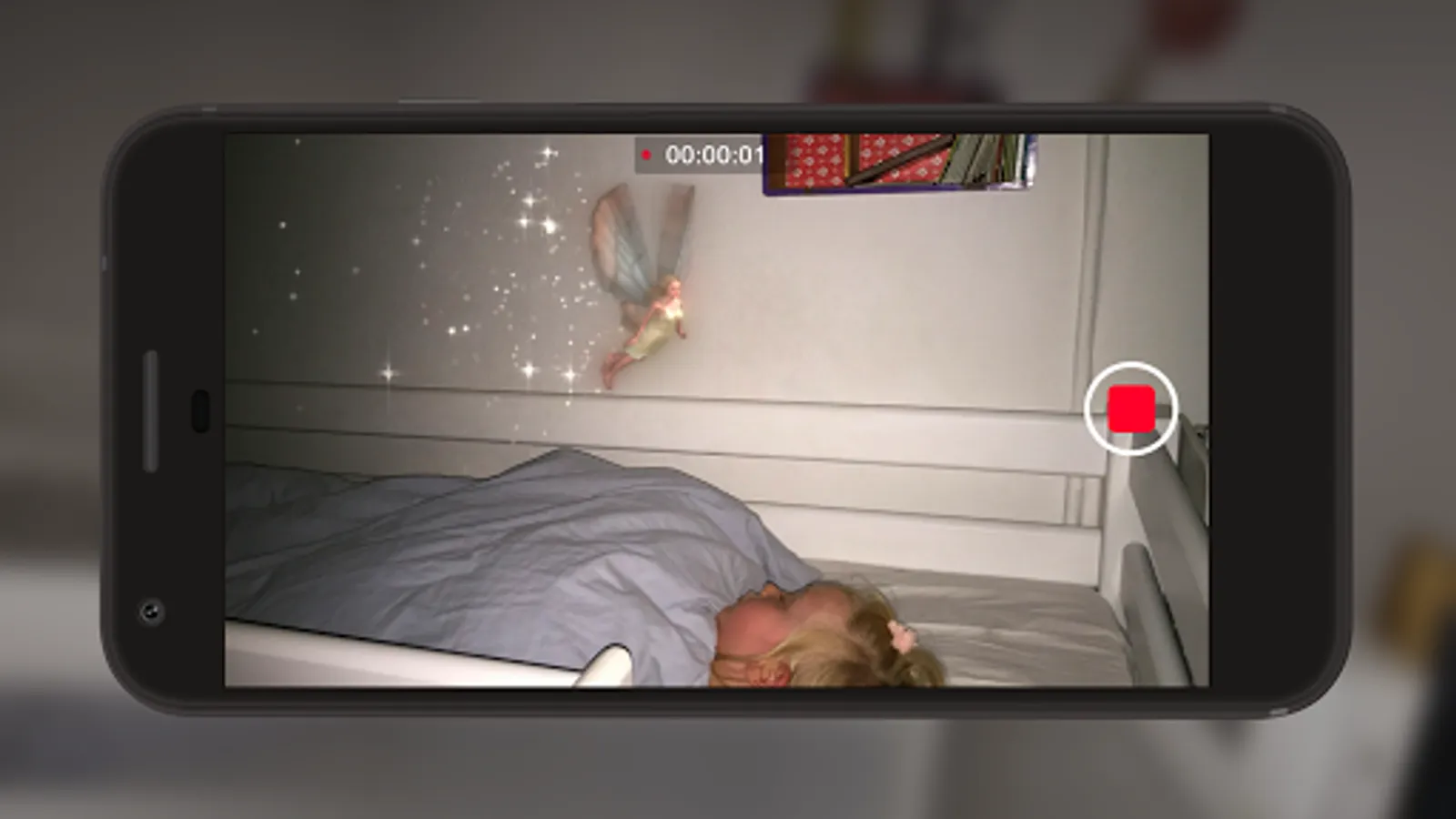 The Tooth Fairy is shown in real-time, as you record. You can follow her with the camera, as she flies about in your home.