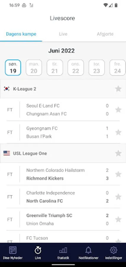 I tillegg får du livescore fra alle store fotballigaer. Du kan stille inn overvåking for alle fotballkamper eller dine favorittklubber, deretter vil du automatisk motta melding om kampstart, mål, røde kort osv.
