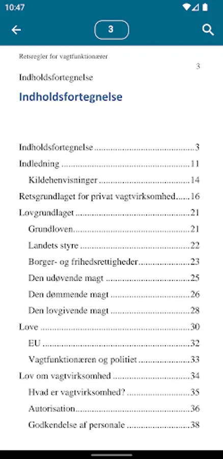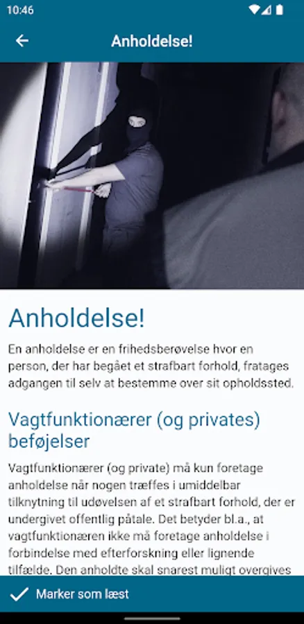 Security policies are developed as a learning tool for students and trainees who are training as guard official. It is also desired that the persons in employment as a guard, can use the app as a quick reference in relation to specific events that require knowledge of the law and justice.