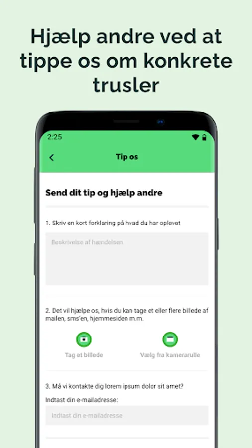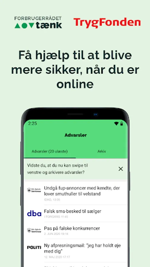 Receive alerts on the latest attempts at cheating - directly on the phone. Danish authorities such as the Police, banks and IT security companies make sure you are notified when there are fake text messages, emails or contests in circulation.