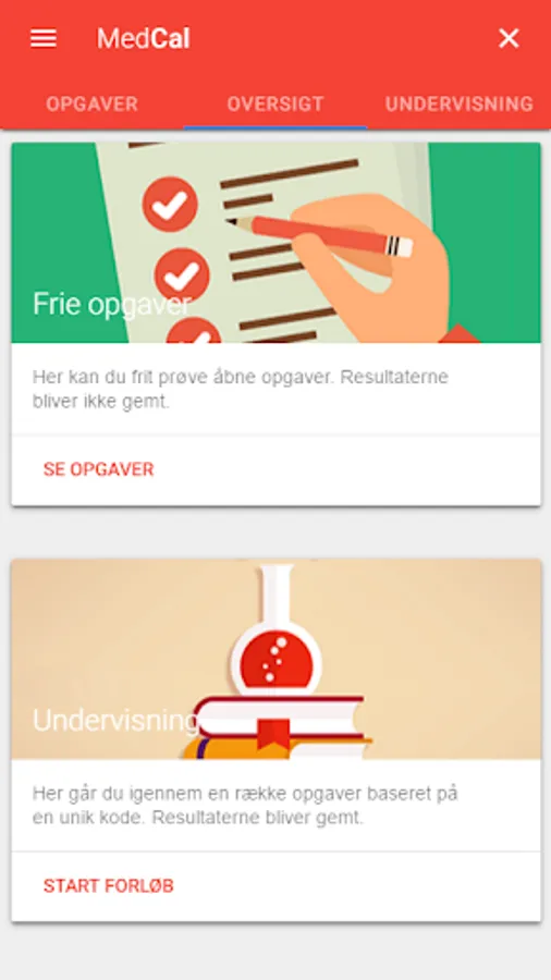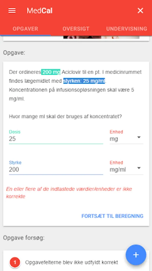 In cooporation with University College Lillebaelt we have added a learning module to MedCal which makes it possible for students to fil out assignments.
