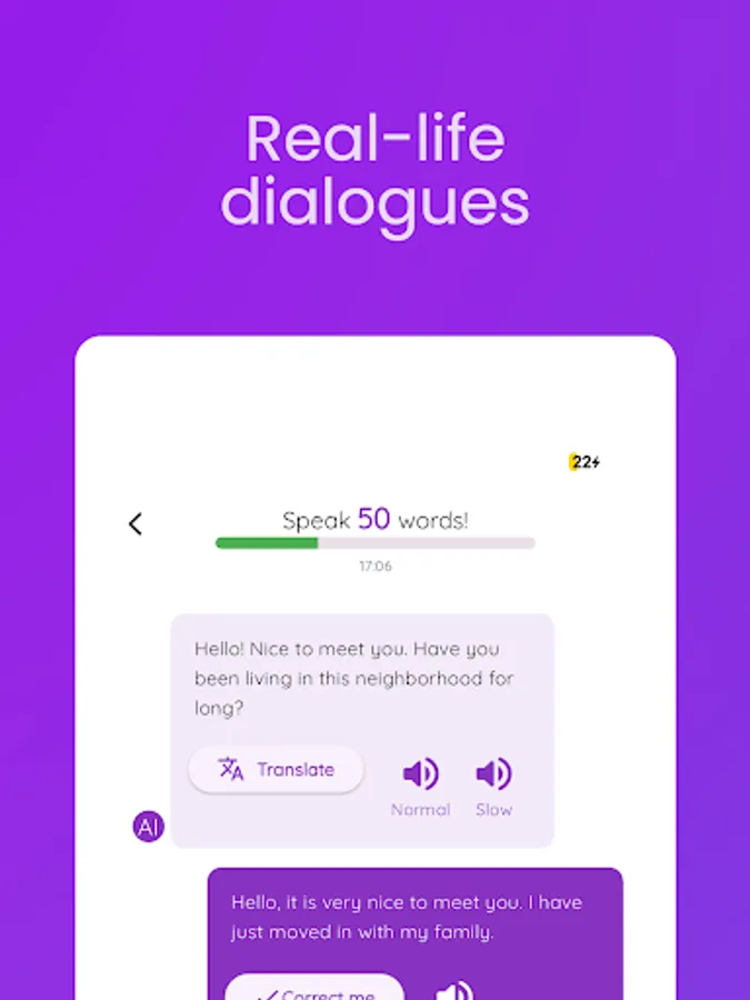 2️⃣ Immersive AI Conversations: Engage in realistic conversations with AI-powered native speakers. Practice speaking in various contexts, from ordering at a restaurant to casual chit-chat, making your experience superior to Duolingo.