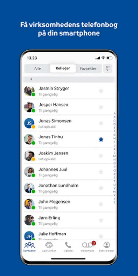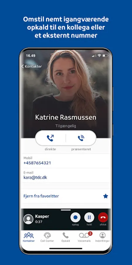 TDC Business Assist is your personal tool for professionally managing your calls. You get easy access to your company's phonebook, and you can use TDC Business Assist to call, send text messages or emails to your colleagues.