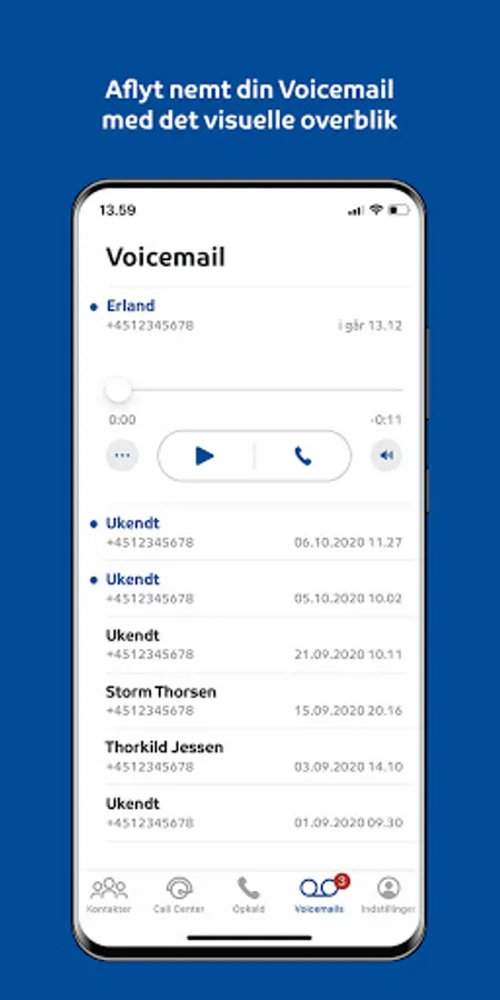 With Visual Voicemail in the app, you have an easy overview of all your voicemails. You can delete, listen, rewind or share your voicemails through the app.