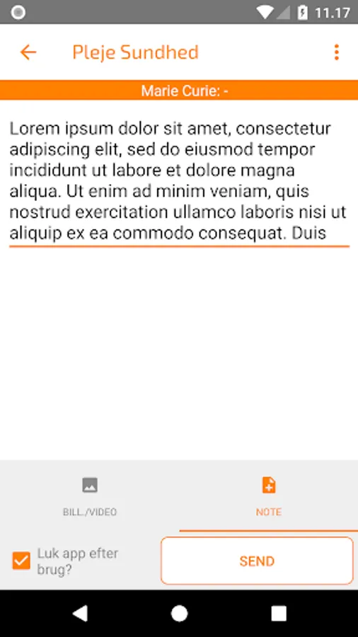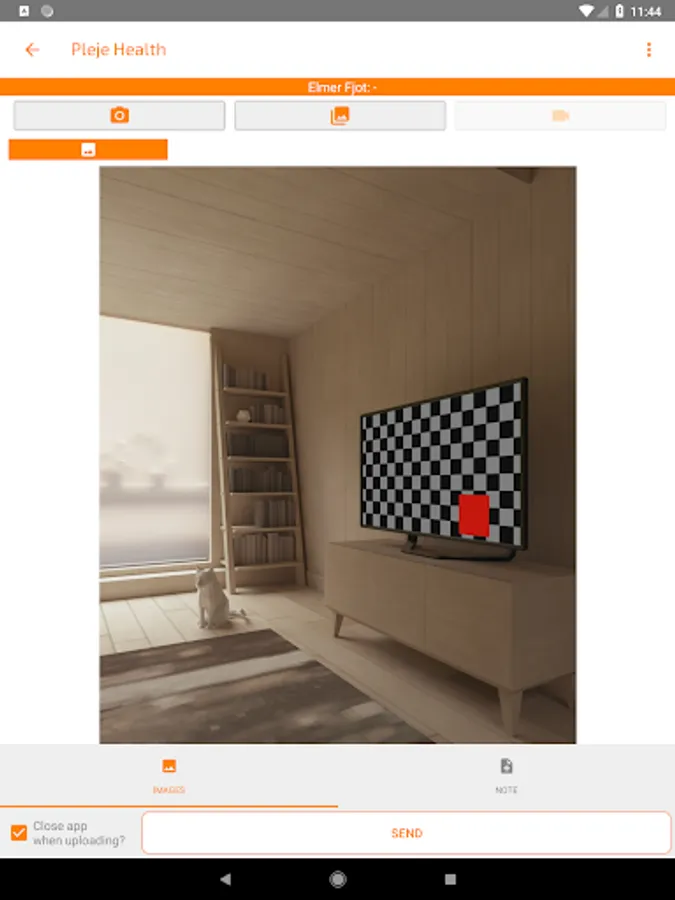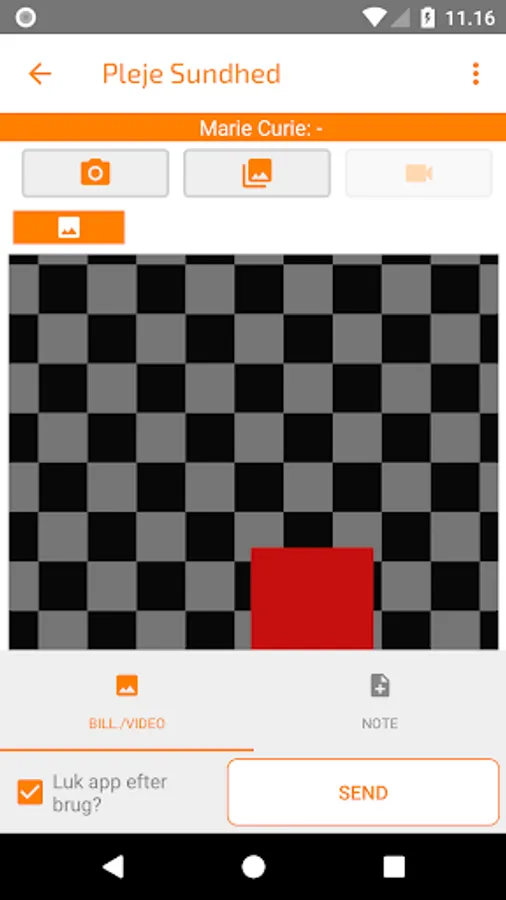 The app care health is used for the journal, www.pleje.net/sundhed, to provide a visual overview of the patient's course. The app requires access to the web journal. Transfer encrypted images and videos to existing or new patient paths.