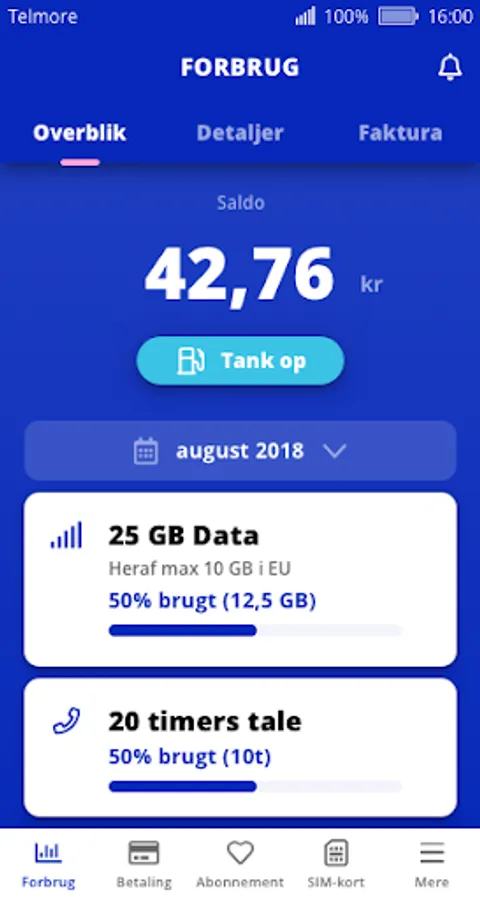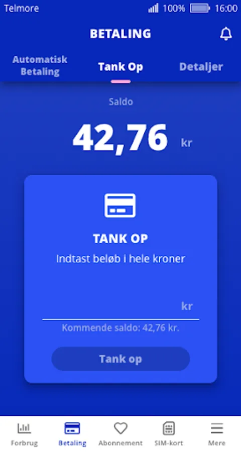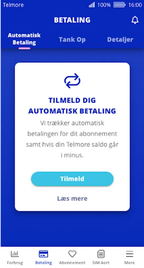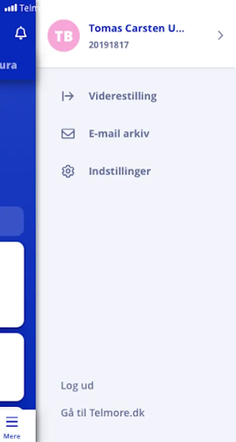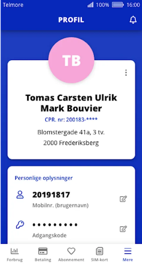 You log in with your mobile number and your password, just like at My Telmore at telmore.dk.
