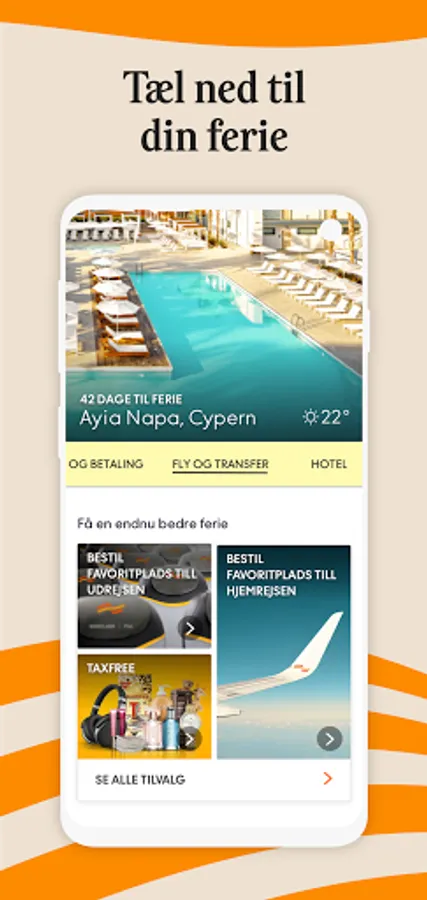 In our app you have access to all travel in Spies' world. Search for your trip from the airport that suits you best, find the right hotel or use our popular heating guide to see how hot it is when you have a holiday. In the app you will find all current offers, maps, our guests' rating and information about all our destinations. Once you have found your trip, you can easily book and pay directly in the app.