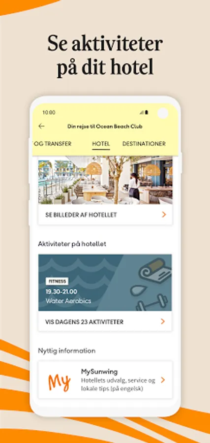 If you live in one of our own hotels - Sunwing, Sunprime or Ocean Beach Club, the app will be extra good. Here you will find all activities at the hotel and can easily book time in the gym or on some of our training teams. Do the children long for Lollo & Bernie, or do the teenagers need a break from the family? You will also find these activities in a clear calendar in the app, where you can book an appointment directly. From the app you can also go to the hotel's own websites, where you can order takeaway, order a spa and get an overview of all facilities in the area.