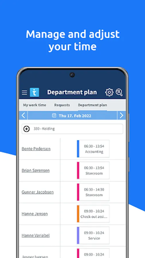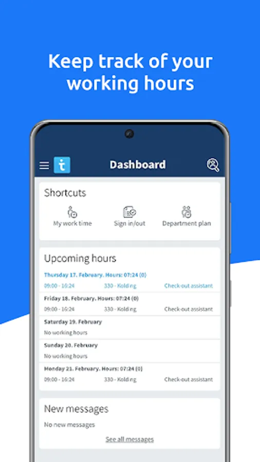 • You can access your work schedule regardless of where you are, and you have an overview of your holidays, time off in lieu, flexitime, accumulated work hours, and salary.