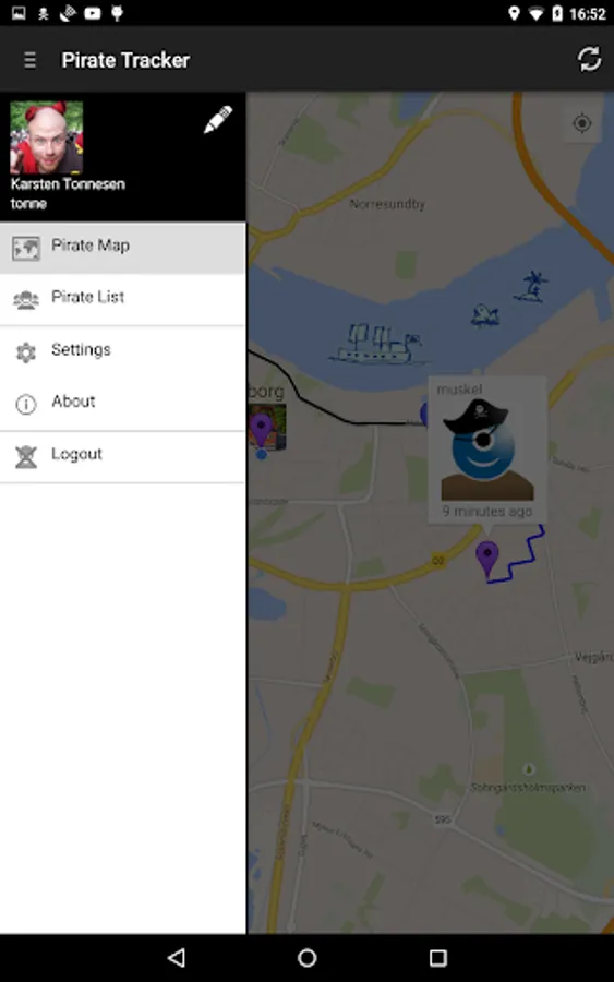 Pirate tracker usable only during Karneval in Aalborg to keep track of our pirate crew.