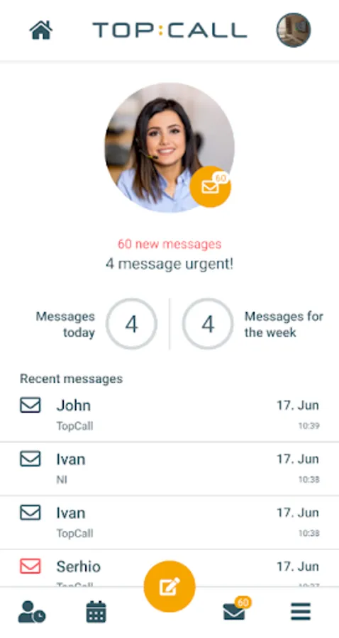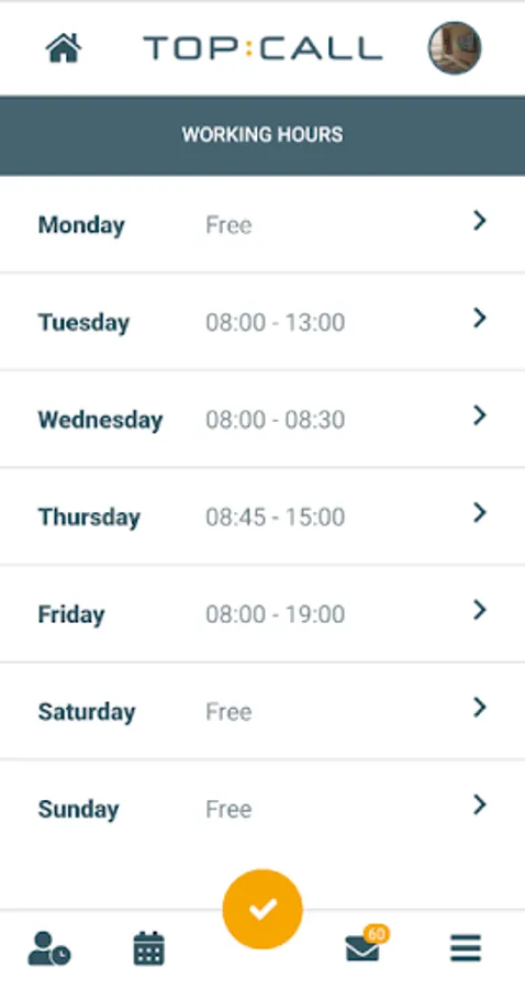 In the TopCall Android App you can receive the messages from TopCall and easily keep track of which messages you have managed. You can also easily notify TopCall in the App if you are meeting, ill or stay free.