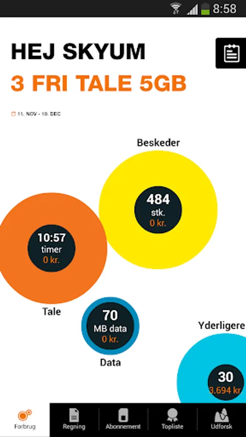 Provides a smart overview of your consumption on data, SMS and speech right down to the smallest detail. You can always keep track of how much or little you use, even when you buy your train ticket via SMS on your mobile phone.