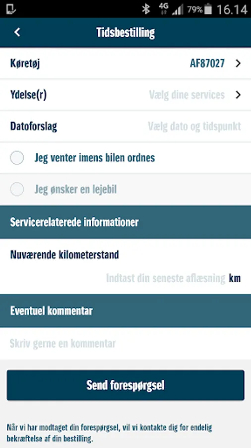 • Create your car in the garage, so appointments can rapidly cleared from the phone.