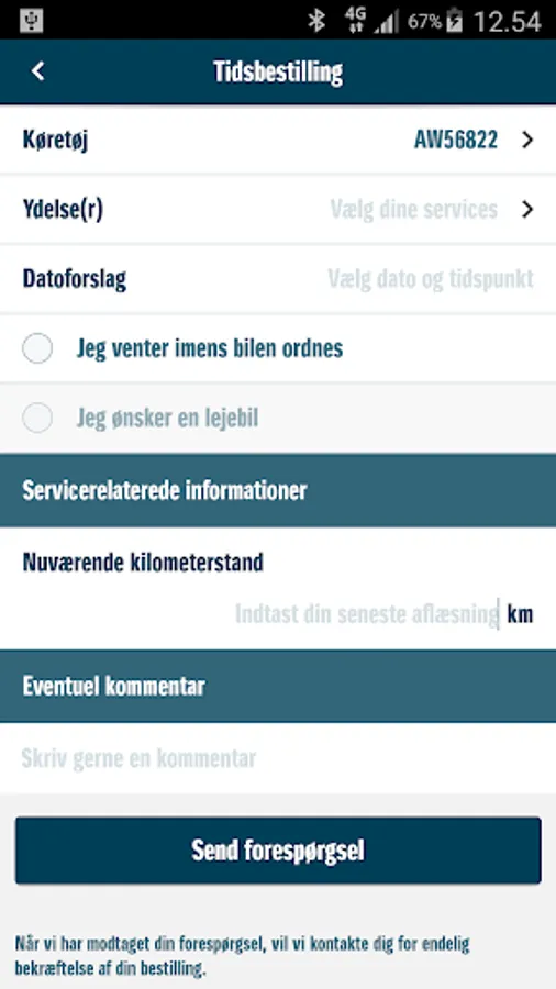 • Create your car in the garage, so an appointment can be done quickly from the phone.