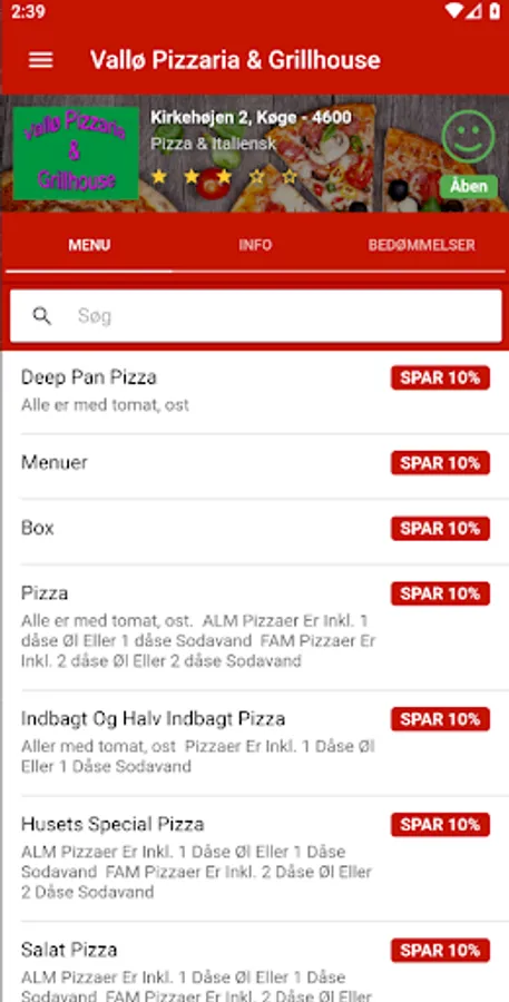 Med Vallø Pizzaria & Grillhouse app på telefonen, har du madbestilling lige ved hånden.