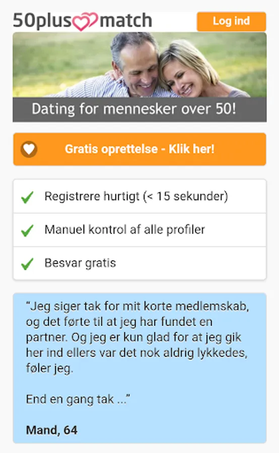 Du skal blot downloade App'en og begynde dating med 50PlusMatch.dk.