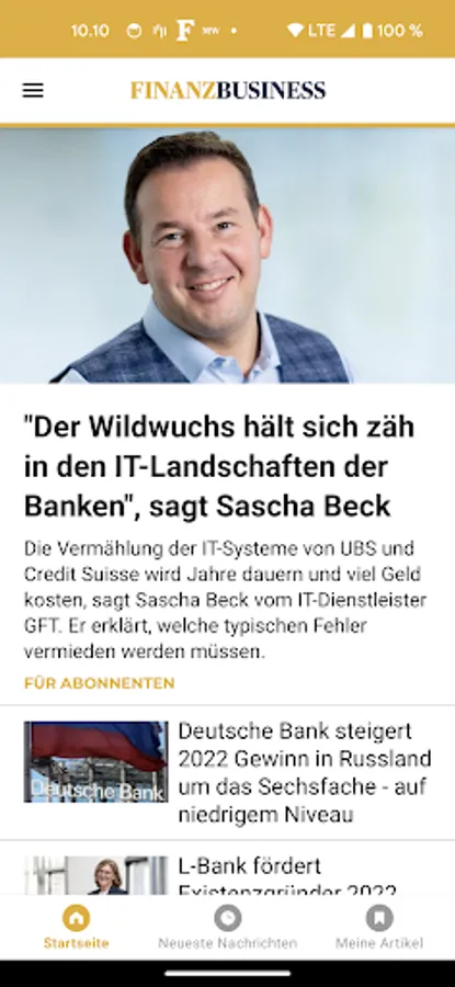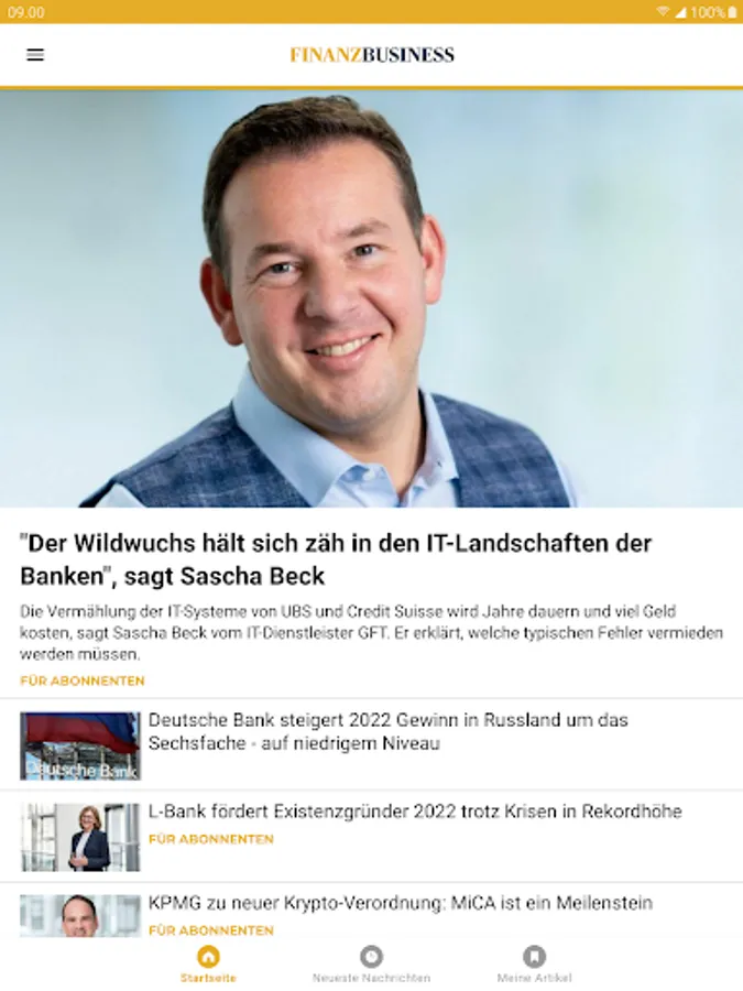 FinanzBusiness reports independently and fairly about companies and people in the banking sector in Germany. Own, exclusive reports and an editorially weighted overview of what is going on in the industry provide tangible added value every day. The most important news is bundled by our own editorial team in a newsletter that is sent out at 8 a.m. and 12 p.m. We report on strategy, mergers and acquisitions, business figures, monitor the competitive situation, market, product and personnel issues. There are also top news as push messages on the go. With our own app you can easily stay up to date. You can bookmark messages and read them later, share and post articles on your network and track top news in real time. With the app, our complete range is available to you at any time.