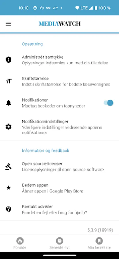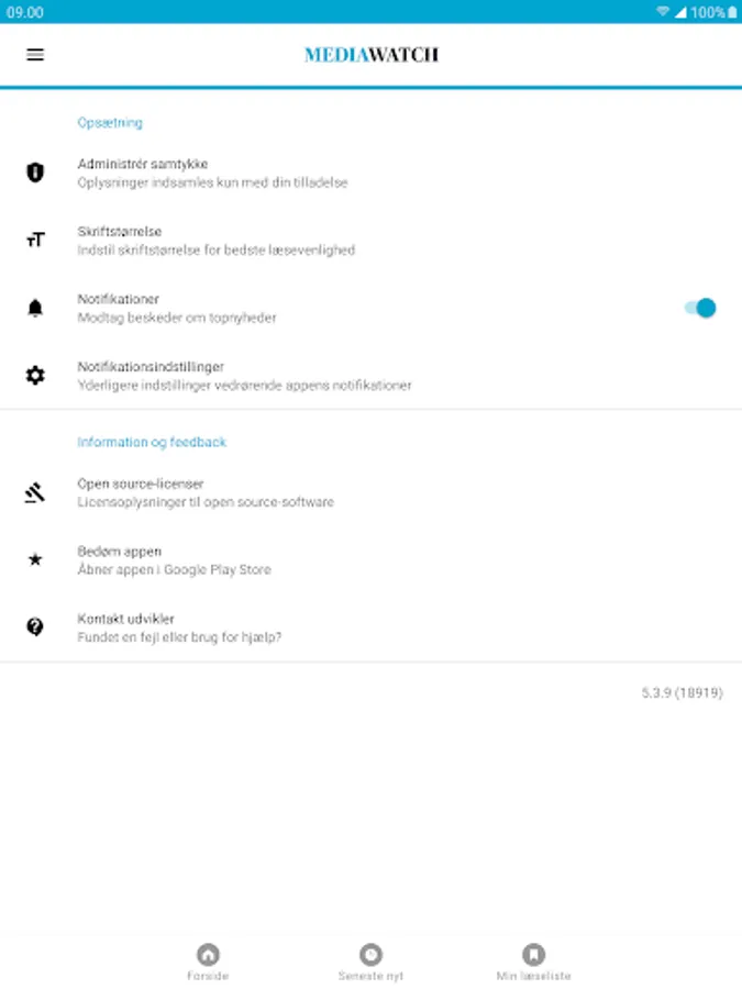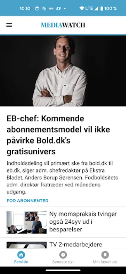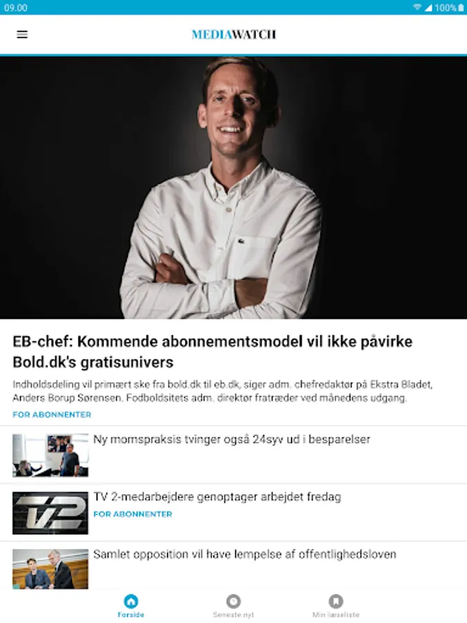MediaWatch is the medium of the media industry - newspapers, radio and television, digital, print, media policy, etc. At MediaWatch you will find articles about strategy, leadership, results, competitors, ambitions, success, failure, attitudes, fraud, profiles, job shifts and much more. In other words, it is enough to keep track of, and with the MediaWatch app it has become much easier.