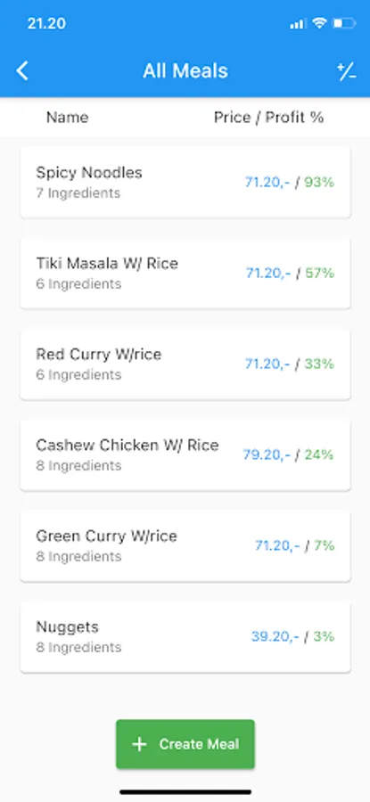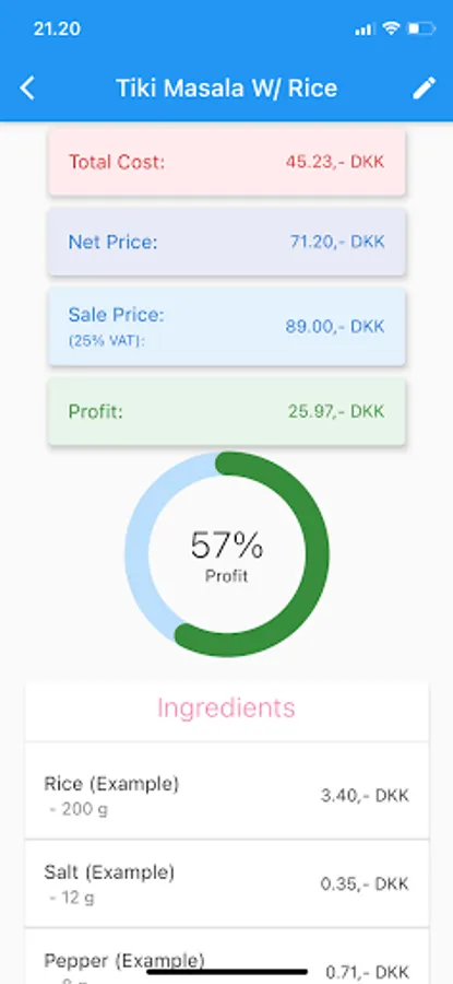 With ProfCalculator you will be able to get insight into your restaurants meals, menus and even catering options. You will get an overview on how much profit your gain from each meal etc. and see what your major costs are. With this app you make sure that you never sell a product that doesn't make you a profit.