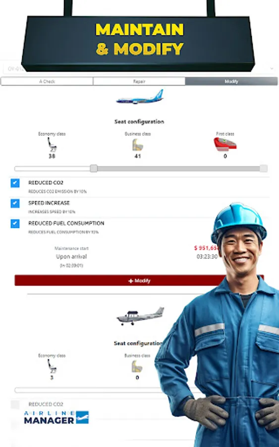 Choose between 2 game modes: EASY or REALISTIC. Take the easy option right out of the gate to lower prices and increase profits, or challenge yourself in realistic mode, where you have to consider the smallest details like the length of airport runways.