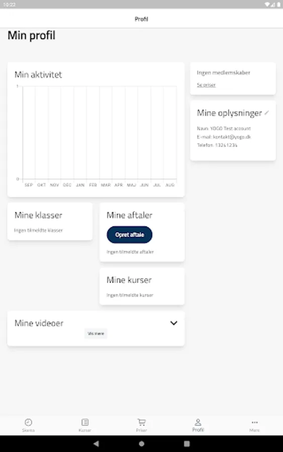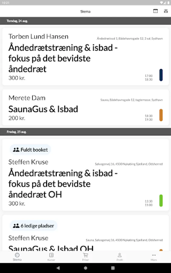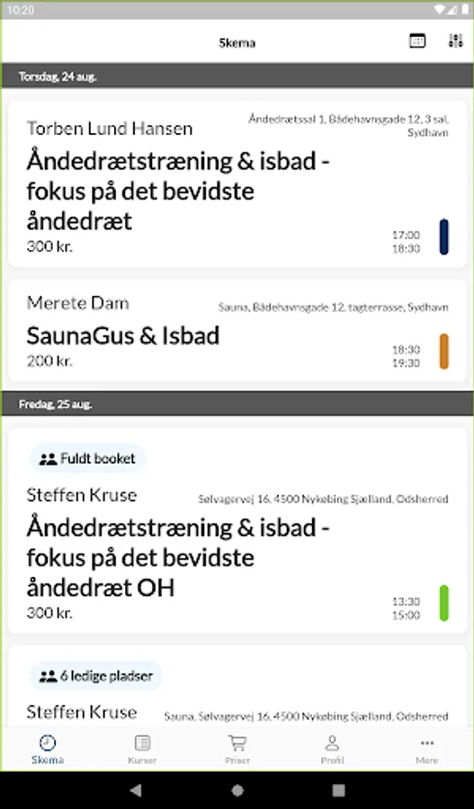 When you open the app, you are met by a clear and simple design that immediately gives you an overview of your registered courses, memberships and other activities. This overview is essential to be able to plan and adapt your time with Innercise so that you get the most out of it.