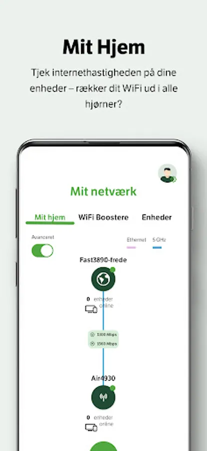 Get an overview of all the devices connected to your Wi-Fi, and select which ones your router should prioritize. You can also check the exact internet speed on all your devices and see which ones have a bad connection. If necessary, use the app to test whether changing the location of your router or your Wi-Fi Booster helps. Create rules for screen time in the family. With the Mit Internet app, you can each create your own profile, determine which devices belong to whom, and set up specific rules for online time for everyone in the family.