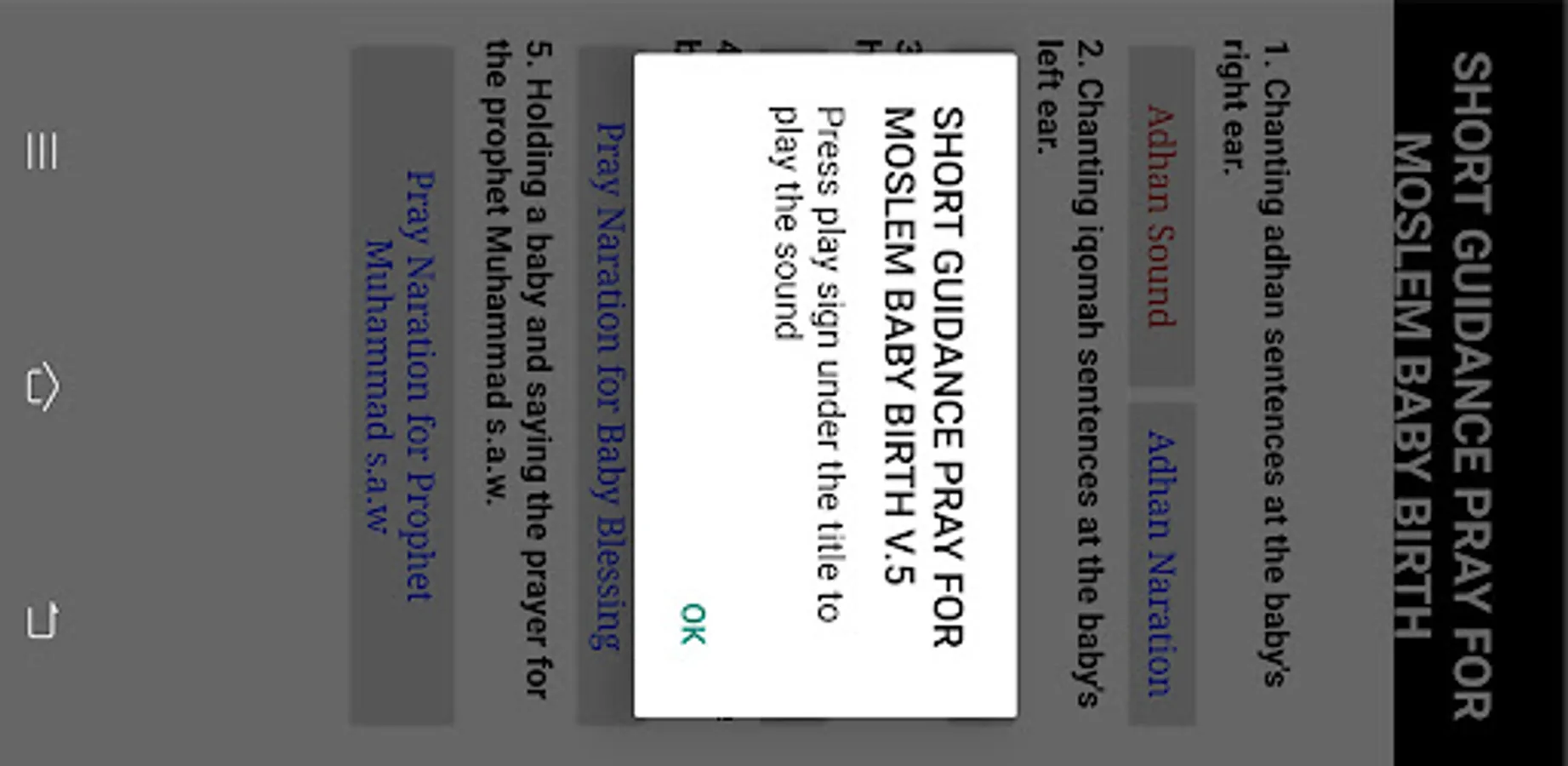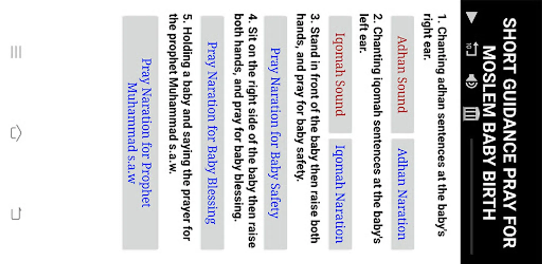 Consist prayers to welcome the birth of a baby which is divided into 4 (four) stages. Animations are presented at stages 1 (one) and 2 (two). Thank you for downloading this app.