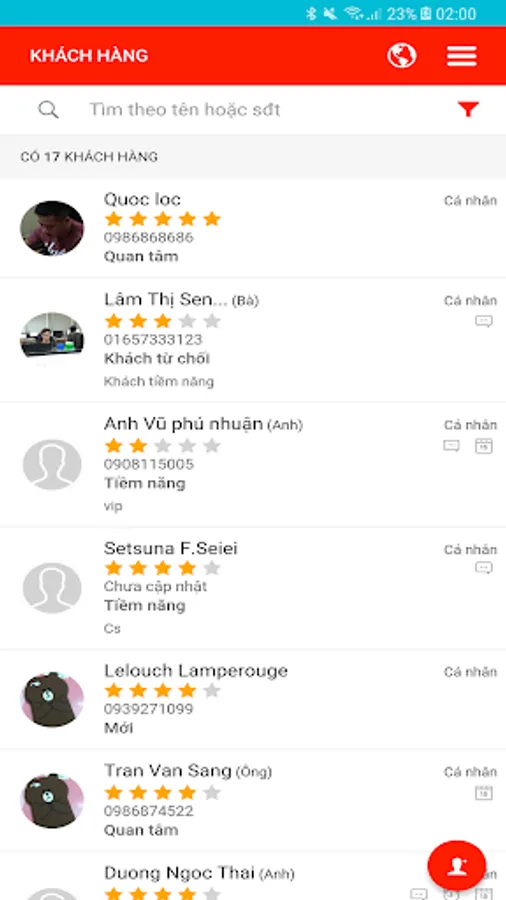List management, profile details and needs of customers. Classification, evaluation of potential customers. Update status of customer care. Customers receive directly from the company through the application