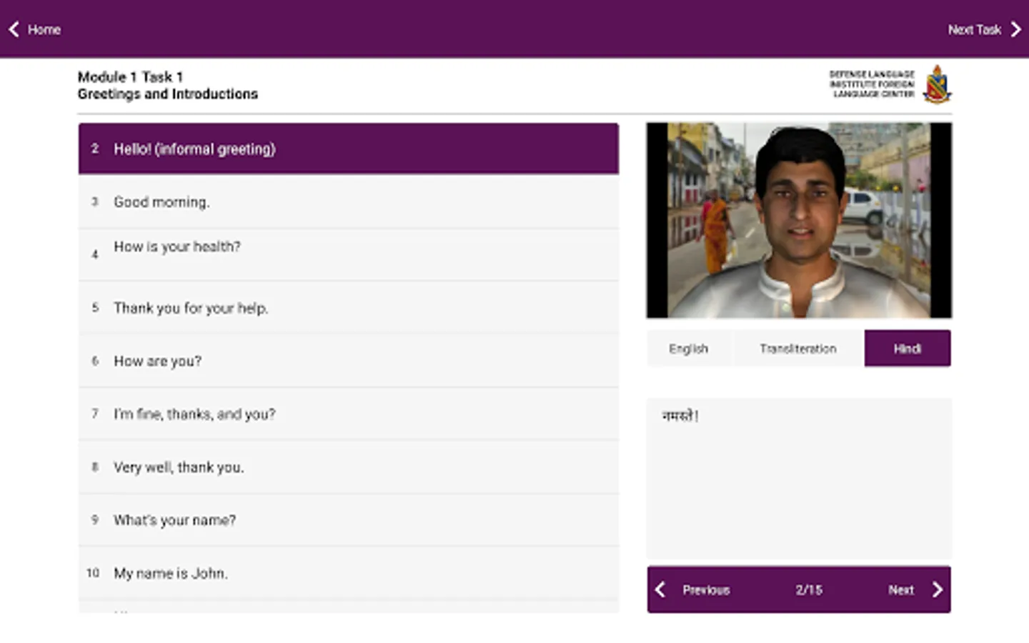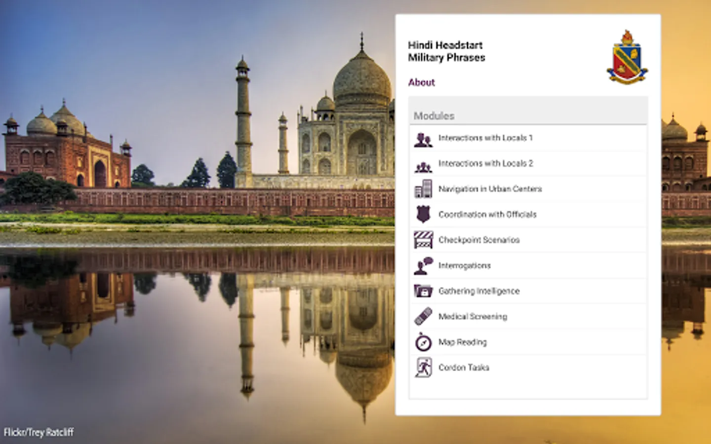The Headstart2 Military Phrases app exposes users to 50 mission-specific tasks containing 750 terms and phrases. These tasks include vocabulary covering public safety, medical situations, basic command, cordon and search, and even gathering intelligence. Headstart2 provides users with important communication tools that are needed in preparation for deployment. The material was developed by the Technology Integration Division of the Defense Language Institute Foreign Language Center in Monterey, California.